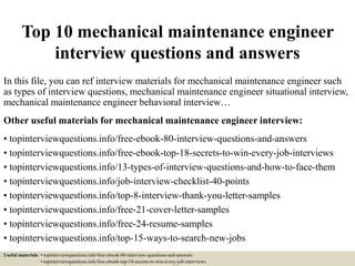 Read Online mechanical maintenance engineering interview question Doc online is a convenient and frugal way to read mechanical maintenance engineering interview question you love right from the comfort of your own home. Yes, there sites where you can get Doc "for free" but the ones listed below are clean from viruses and completely legal to use.